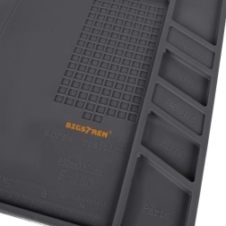 Alus on kõrgetele temperatuuridele vastupidav, kaitstes töölauda jootmisel või kuuma õhuga töötamisel. Integreeritud mõõtjooned cm ja tollides lihtsustavad täpset mõõtmist ja komponentide paigutust. Silikoon on ühtlasi kemikaalikindel ning seda on lihtne puhastada.