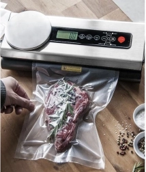 Digitaalne kaal kuni 2 kg ja 1 g sammuga aitab portsjonid ära kaaluda juba enne vaakumiseerimist – vähem raiskamist ja parem varude korraldus.
