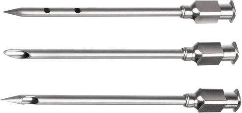 Pakendist leiad kolm erinevat nõela roostevabast terasest (1, 2 ja 5 avaga), nii saad hõlpsalt kohandada voolavust ja marinaadi tüüpi. Kummitihend hoiab ära vedelike lekke ning standardne Luer-kinnitustüüp võimaldab nõelu kiiresti vahetada. Vastupidavad materjalid PCTG/PP ja roostevaba teras taluvad korduvat kasutust ja on lihtsad puhastada.
