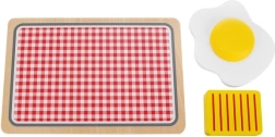Komplektis on kõik ideaalseks hommikusöögiks: 2 röstsaiaviilu, praetud muna, juust, moos, nuga ja kandik – ideaalne rollimängudeks.