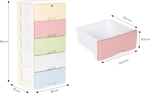 Hoia kord stiilselt ja pingutuseta. Liikuv riiul viie värvilise sahtliga sobib suurepäraselt mänguasjadele, kosmeetikale ja väikestele tarvikutele. Tänu tugevast plastist konstruktsioonile ja stabiilsele raamile sobib see nii lastetuppa kui ka vannituppa, kus hindad lihtsat hooldust ja puhast, modernset disaini.