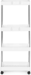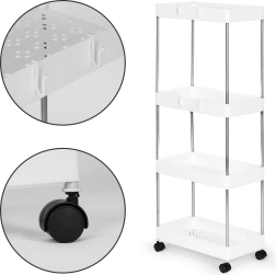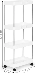 Plastikust riiul vannituppa või kööki on ideaalne kõigile, kes otsivad funktsionaalsust ja kergust ühes. Neli riiulit pakuvad palju hoiuruumi erinevate tarvikute jaoks, alates kosmeetikast kuni rätikute ja hügieenitoodeteni.
