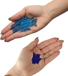 Praktilised hüdrogeelpärlid, mis paisuvad vees mitmekordseks, on ideaalsed lõbuks geelipüstolites, dekoratsioonideks ja DIY-projektideks ning taimede jätkusuutlikuks kastmiseks. Pakendis on 50 000 tk sinist värvi pärleid, mis saavutavad pärast 3–4 tundi vees 7–8 mm läbimõõdu. Need on biolagunevad ja keskkonnasõbralikud.