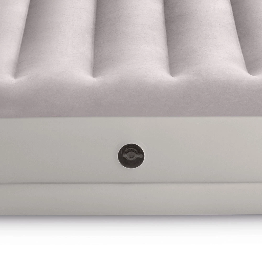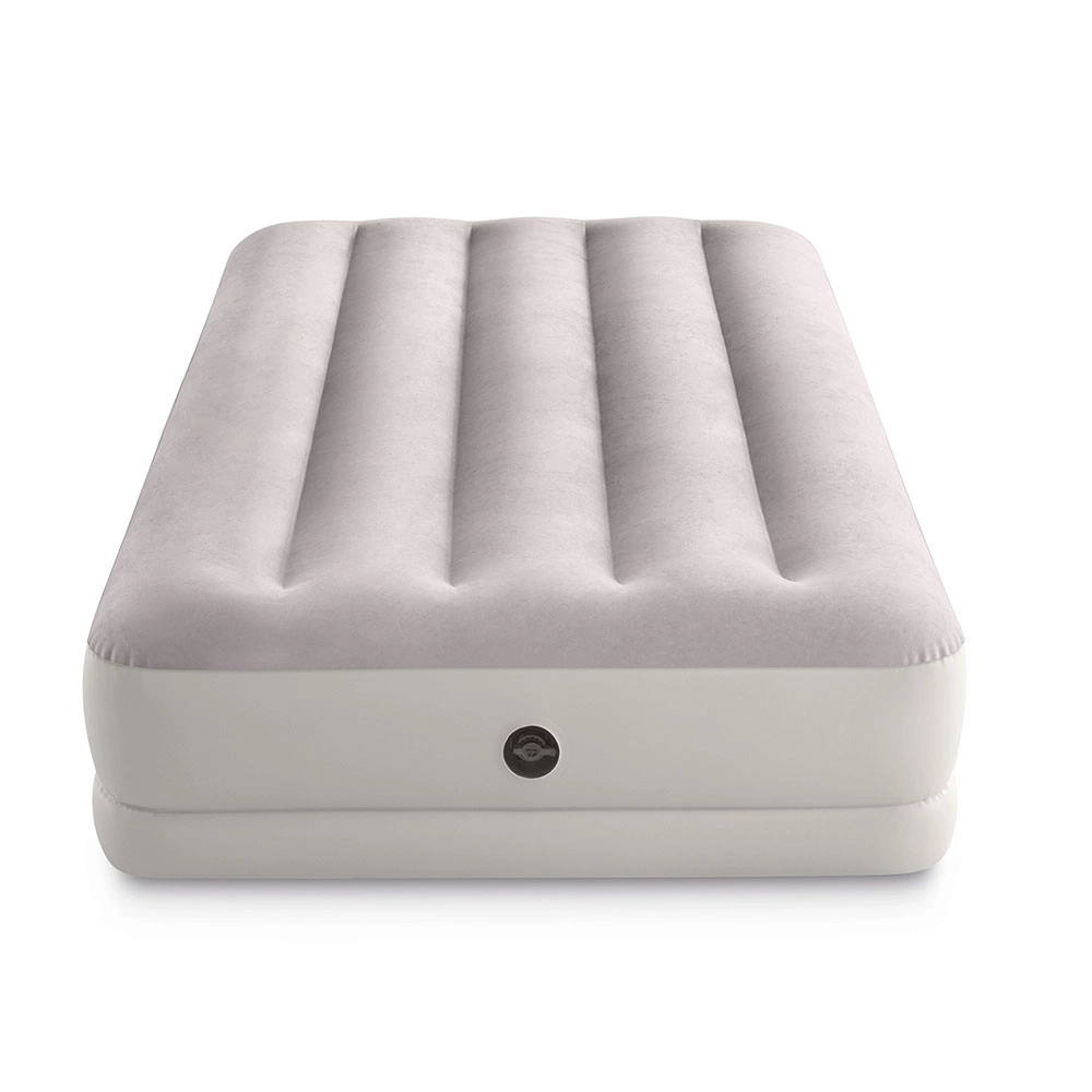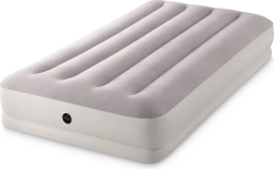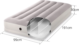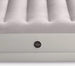 Täispuhutav voodi INTEX ühendab vastupidava PVC-materjali pehme flock-kattega pinnaga, mis on meeldiv puudutusele ja parandab une mugavust. Tõstetud konstruktsioon pikisuunaliste kambrite ja sisemiste tugevdustega tagab stabiilsuse ilma õõtsumise efektita ning usaldusväärse toe selgroole.