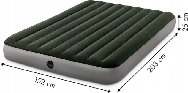 Mugav kahekohaline INTEX täispuhutav madrats mõõtudega 203 × 152 × 25 cm pakub kiiret ettevalmistust tänu kaasasolevale elektripumbale. Mõnus veluurpind on veekindel ja pehme puudutusele, Dura-Beam Fiber tehnoloogiaga konstruktsioon tagab stabiilsuse ja toetuse selgroole. Ideaalne koduseks ööbimiseks ja telkimiseks, kiire täis- ja tühjendamisega läbi Bostoni ventiili.