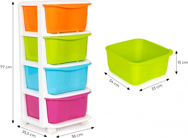 Ratastel hoiukorraldaja pakub toimivat ja praktilist lahendust esemete lihtsaks korrastamiseks. Sobib eriti hästi lastetubadesse või vannitubadesse.