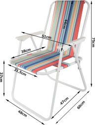 Kerge, värviliste triipudega kokkupandav rannatool pakub mugavat istumist vee ääres, aias ja ka kämpingus. Tugev terasraam ja vastupidav kangas tagavad stabiilsuse, samas kui kompaktne lame kokkupakitavus säästab ruumi nii transpordil kui ka hoiustamisel. Ideaalne randa, telkimiseks, piknikule ja rõdule.