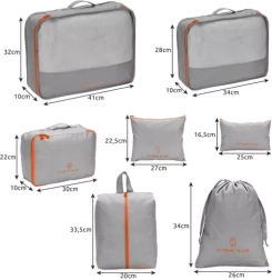 Meie reisikorraldajate komplekt tagab maksimaalse efektiivsuse pakkimisel. Kasuta seitsme eri suuruse ja otstarbega kotti aluspesu, jalanõude, kosmeetika või elektroonika korraldamiseks.