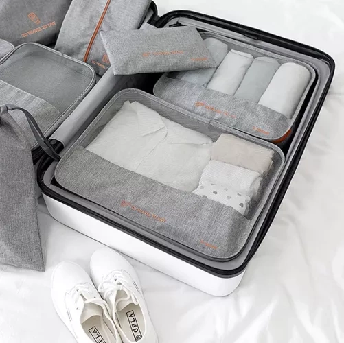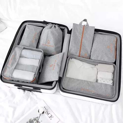 Seitsmeosaline komplekt võimaldab asjade tõhusat paigutamist kohvris või hotellitoas. Jaga esemed vastavalt vajadusele ning pääse kõigele hõlpsasti ligi.