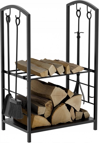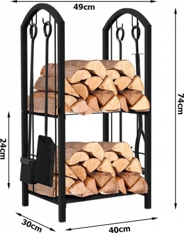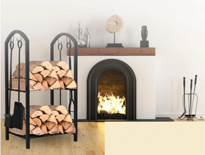 Hoidikul on kaks tasandit, et ruumi maksimaalselt ära kasutada; sinna saab paigutada küttepuid või muid kaminatarvikuid.