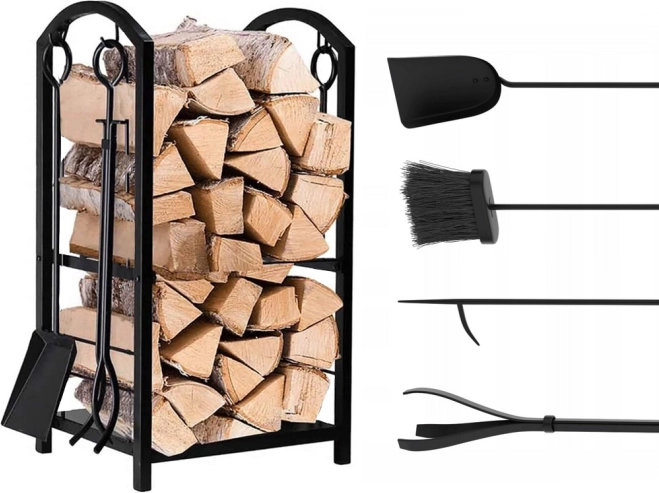 Komplekt sisaldab kõiki vajalikke tarvikuid kaminale, sh labidas, sütehark, tangid ja hari pikkade käepidemetega mugavaks kasutamiseks. Lisaks on komplekt lihtsasti kokkupandav ning sisaldab kõiki paigaldamiseks vajalikke osi.