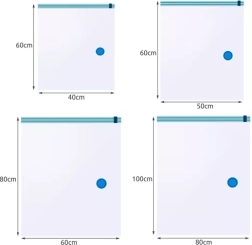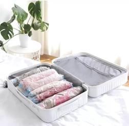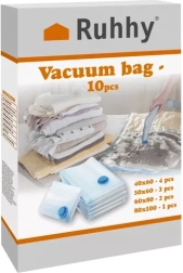 Säästa ruumi kodus ja reisil 10-osalise vaakumkottide komplektiga neljas praktilises suuruses. Pärast õhu väljaimemist tavalise tolmuimejaga väheneb tekstiilide maht kuni 80%. Sisu on usaldusväärselt kaitstud tolmu, niiskuse, vee ja koide eest ning riided püsivad puhtad ja lõhnavad. Ideaalne hooajariiete, tekkide ja päevatekide jaoks ning kohvri korrastamiseks reisimisel.