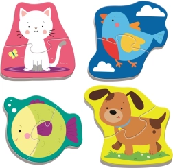 Avastage esimesed pusled mudilastele – 4 armsat puslet koduloomade kujul. Iga pilt koosneb 2 suurest tükist, mis toob kiire eduelamuse ja innustab uuesti kokku panema. Erksad värvid ja sõbralikud illustratsioonid kutsuvad loomulikult mängima.