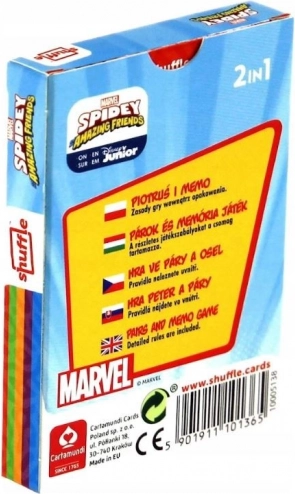 25 kaardist koosnev pakk Spidey ja Super Sõprade teleseriaalide tegelastega, millega saab mängida kahte kaardimängu – Musta Peetrit ja Memonit – ning mis arendavad kõige väiksemate laste loogilist mõtlemist. Mängu eesmärk on leida võimalikult palju paare.