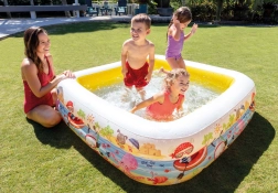 INTEXi eemaldatava katusega täispuhutav bassein on ideaalne laste suvine värskendus aias. Ruutjas kuju mõõtudega 157 × 157 cm ja kõrgus 122 cm pakub küllaga mänguruumi, samal ajal kui 280 l maht 20 cm veetaseme juures tagab turvalise ja mugava lustimise. Vastupidav vinüül (0,25 mm) ja pehmed täispuhutavad seinad lisavad mugavust ja turvalisust.