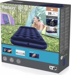 Ühekohaline täispuhutav madrats BESTWAY pakub mugavat und nii kodus kui ka reisil. Tänu tugevale coil-beam konstruktsioonile, sisseehitatud jalapumbale ja integreeritud padjale on seda lihtne täis pumbata ning see pakub stabiilset, mugavat tuge. Ülemine sametiselt pehme vinüül suurendab mugavust, samas kui kahepoolne ventiil võimaldab kiiret täitmist ja tühjendamist.