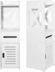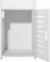 See kitsas valge kapp on loodud tõhusaks kasutamiseks ka väga piiratud ruumides. Avatud ja suletavad hoiulahendused võimaldavad peita puhastusvahendeid või kosmeetikat ning hoida sageli kasutatavad esemed käeulatuses. Õhuline, modernne välimus lisab interjöörile kergust ja puhtust.