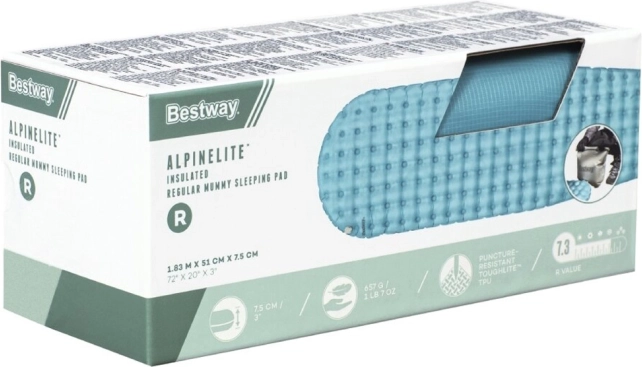 AlpineLite Insulated Regular Mummy magamisalune on ideaalne valik neile, kes soovivad nautida mugavust rannas lõõgastudes, laagris või ööbides telgis. Täispuhumine on lihtne ja kiire tänu uuenduslikule AirCinch süsteemile – piisab, kui surud peopesadega kotti, ning alune täitub kiiresti õhuga. Komplekt on terviklik, nii et ei pea muretsema, et pump ununeb.