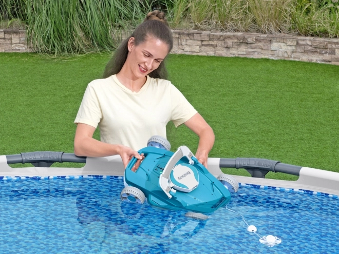 Robotpuhasti BESTWAY Aquatronix G200 on nutikas ja mugav lahendus kristallselge vee jaoks ilma käsitsi puhastamiseta. Piisab sisselülitamisest ja basseini sukeldamisest ning sisseehitatud sukeldusandur käivitab töö automaatselt. Veest välja tõstmisel lülitub puhasti ise välja, säästes mootorit ja akut.