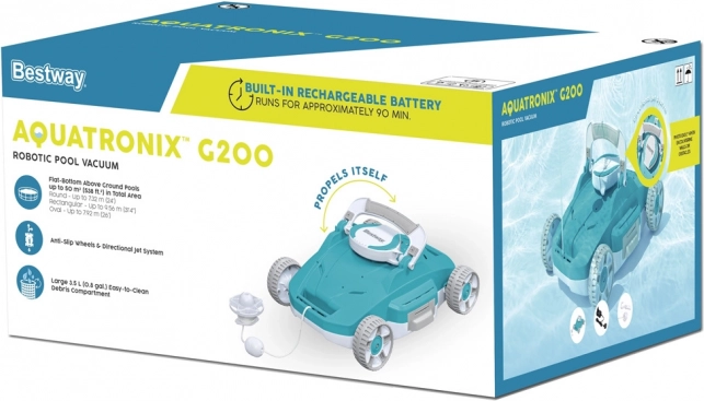 Hoia oma bassein pingutuseta puhtana robot-tolmuimejaga BESTWAY Aquatronix G200. Juhtmevaba töö, kuni 90 minutit ühe laadimisega ja autonoomne navigeerimine suunava vooluga tagavad usaldusväärse põhjapuhastuse. Libisemiskindlad rattad, lihtne juhtimine ühe lülitiga ja suur 3,5 l prahimahuti teevad sellest puhastist ideaalse lahenduse lamepõhjalistele maapealsetele basseinidele kuni 50 m².