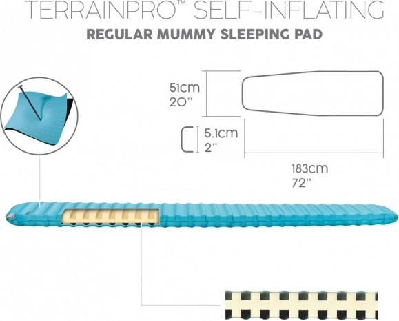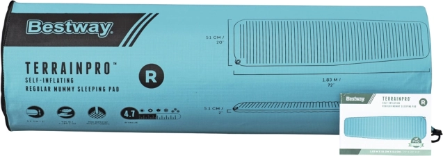 Otsid usaldusväärset matkamatki telkimiseks ja väliseiklusteks? BESTWAY TerrainPro on isetäituv matkamat, mis ühendab kõrge isolatsiooni R 4,7, mugava 5,1 cm paksuse ja vastupidava konstruktsiooni ToughLite ja 70D ripstop nailonist. See pakub kehale stabiilset tuge, isoleerib hästi maapinnast ning sobib tavaliste mumia- tüüpi magamiskottidega.