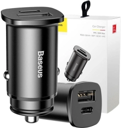 Hoidke oma seadmed alati valmis. Baseus Square on vastupidav metallist 30 W auto laadija kahe väljundiga USB-A + USB-C. Tänu laiale kiirlaadimisprotokollide toele tagab see stabiilse ja ohutu energiavarustuse ka lühikeste sõitude ajal.