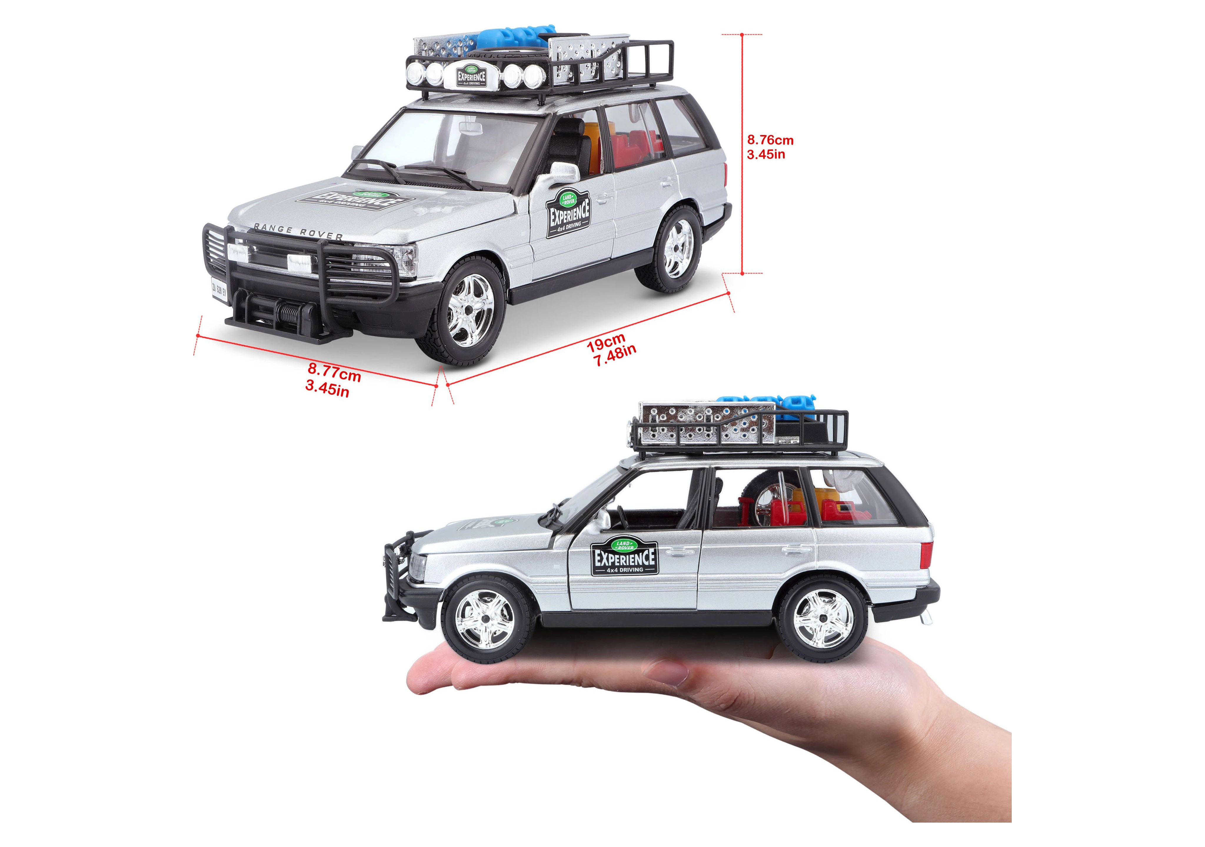 See täpselt viimistletud RANGE ROVERI mudel mõõtkavas 1:24 pakub autentseid detaile, mis rõõmustavad kõiki maastikusõidukite fänne. Hõbedane kere koos katuseraami ja tarvikutega, eesmine kaitseraam ning realistlikud kleebised loovad atraktiivse välimuse nii mänguks kui ka väljapanekuks.