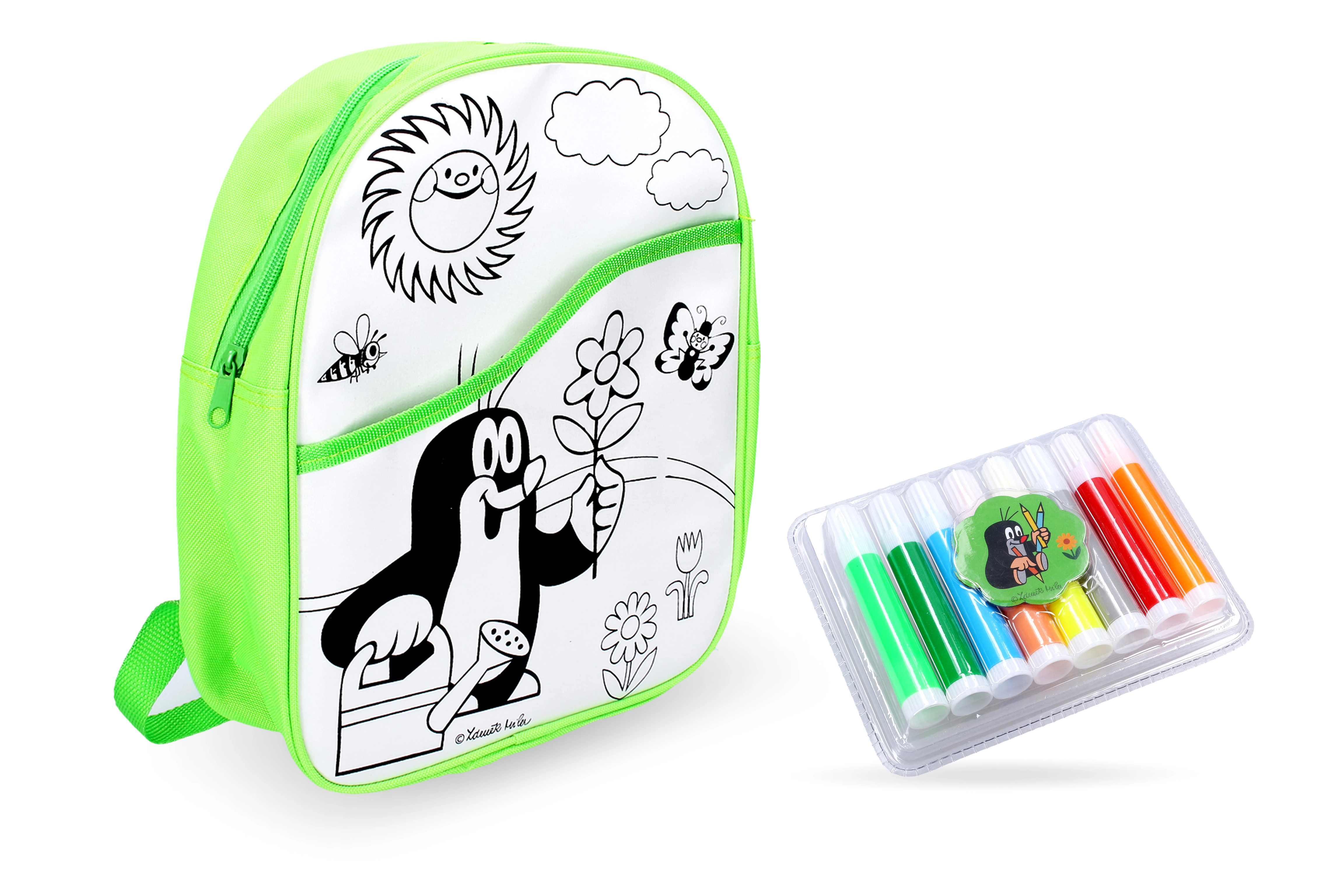 Lõbus ja loominguline värvitav seljakott MUTIKE motiiviga väikestele kunstnikele. Komplektis on 8 värvilist tekstiilivildikat, mis on kergesti mahapestavad külma veega. Ideaalne väljasõitudeks ja lasteaeda, mõõdud u 30 × 27,5 cm, soovitatav alates 3. eluaastast.