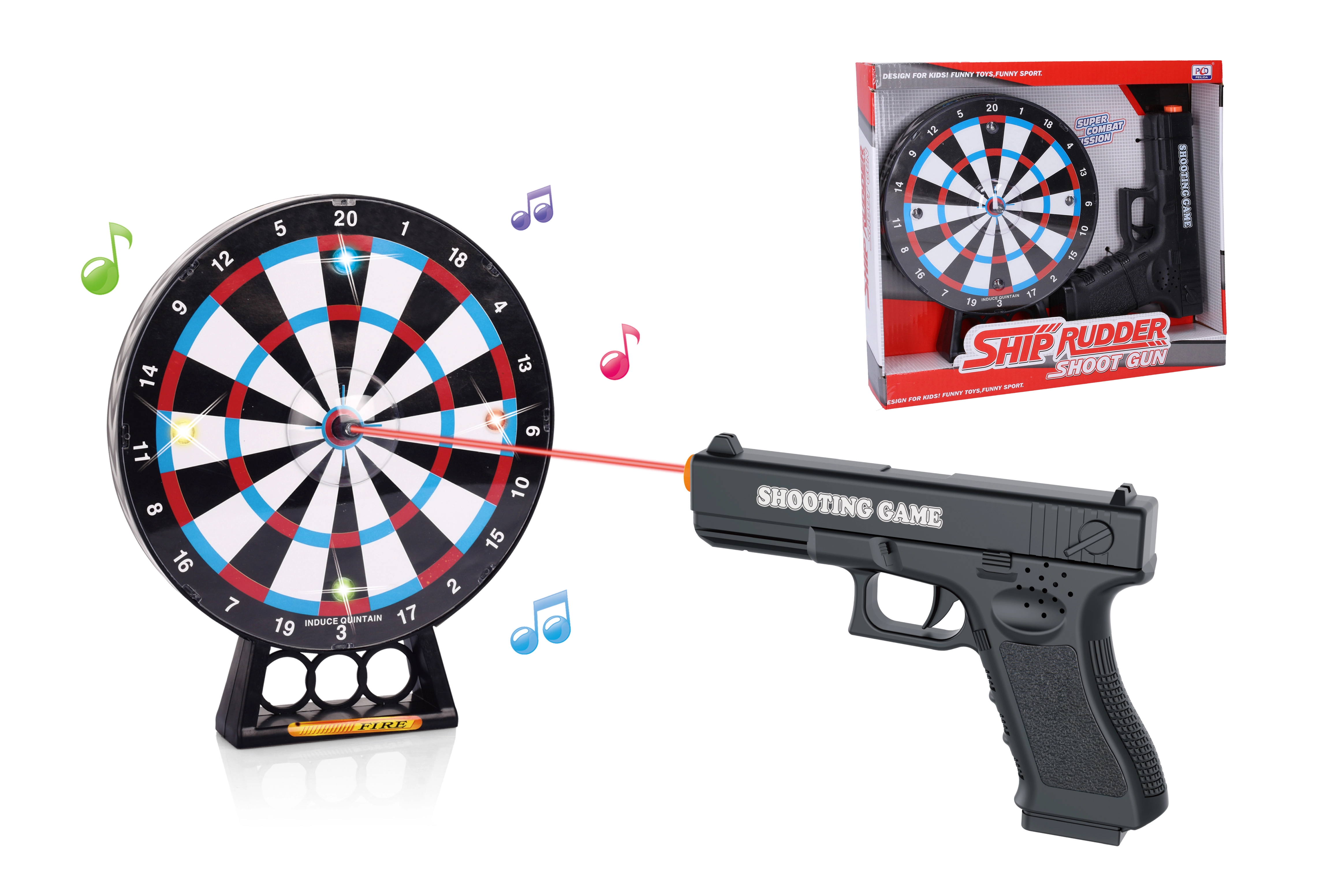 Paranda oma laskmisoskusi selle suurepärase laserpüstoli ja märklauaga. Sihti, tulista ja vaata tabamuse ajal valgus- ja heliefekte.