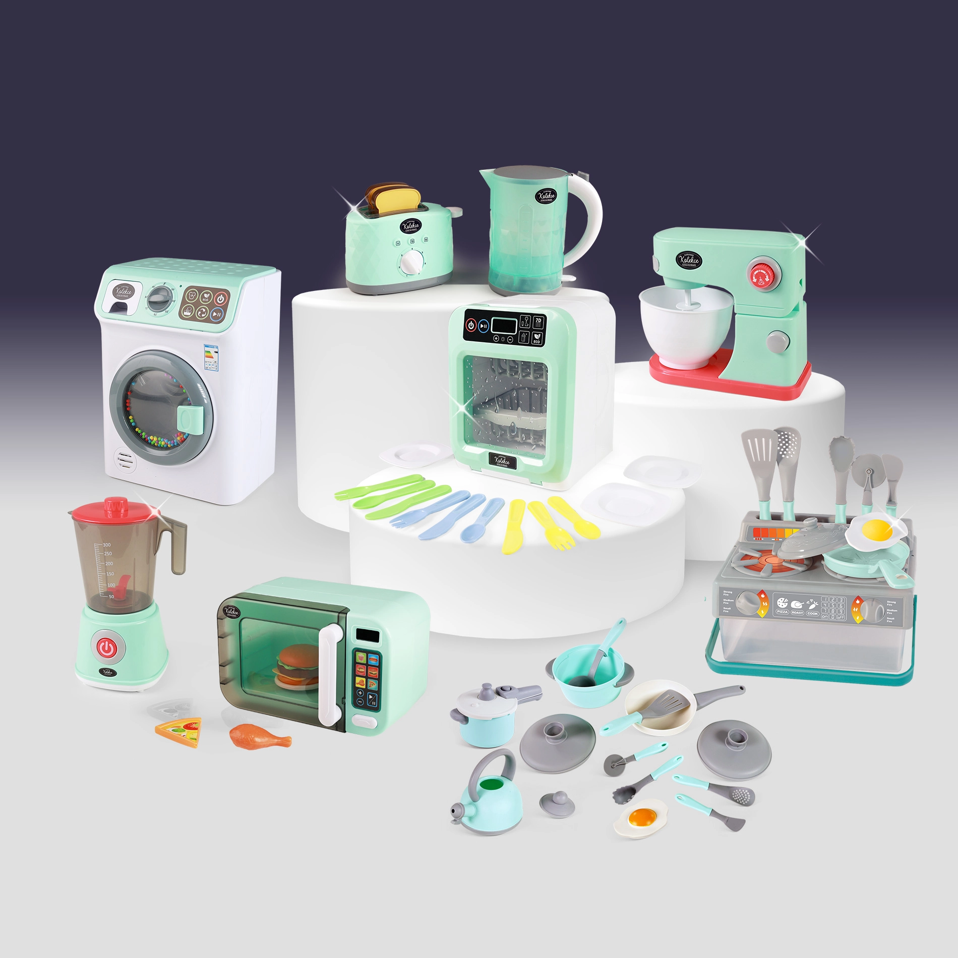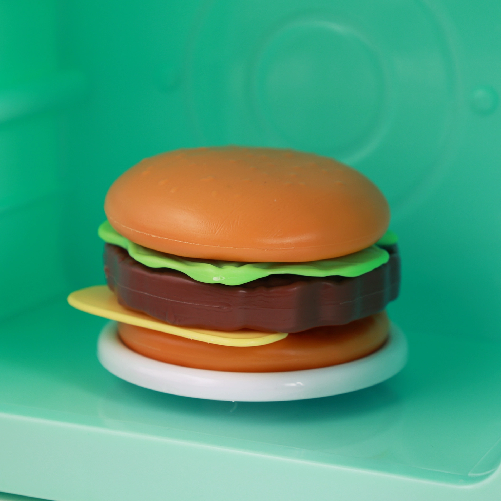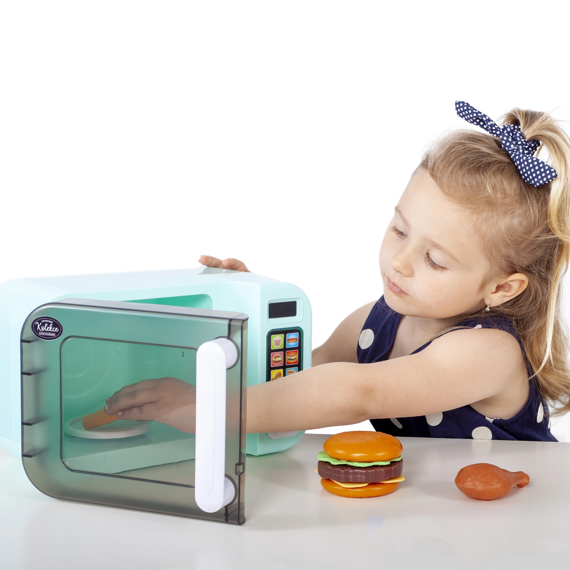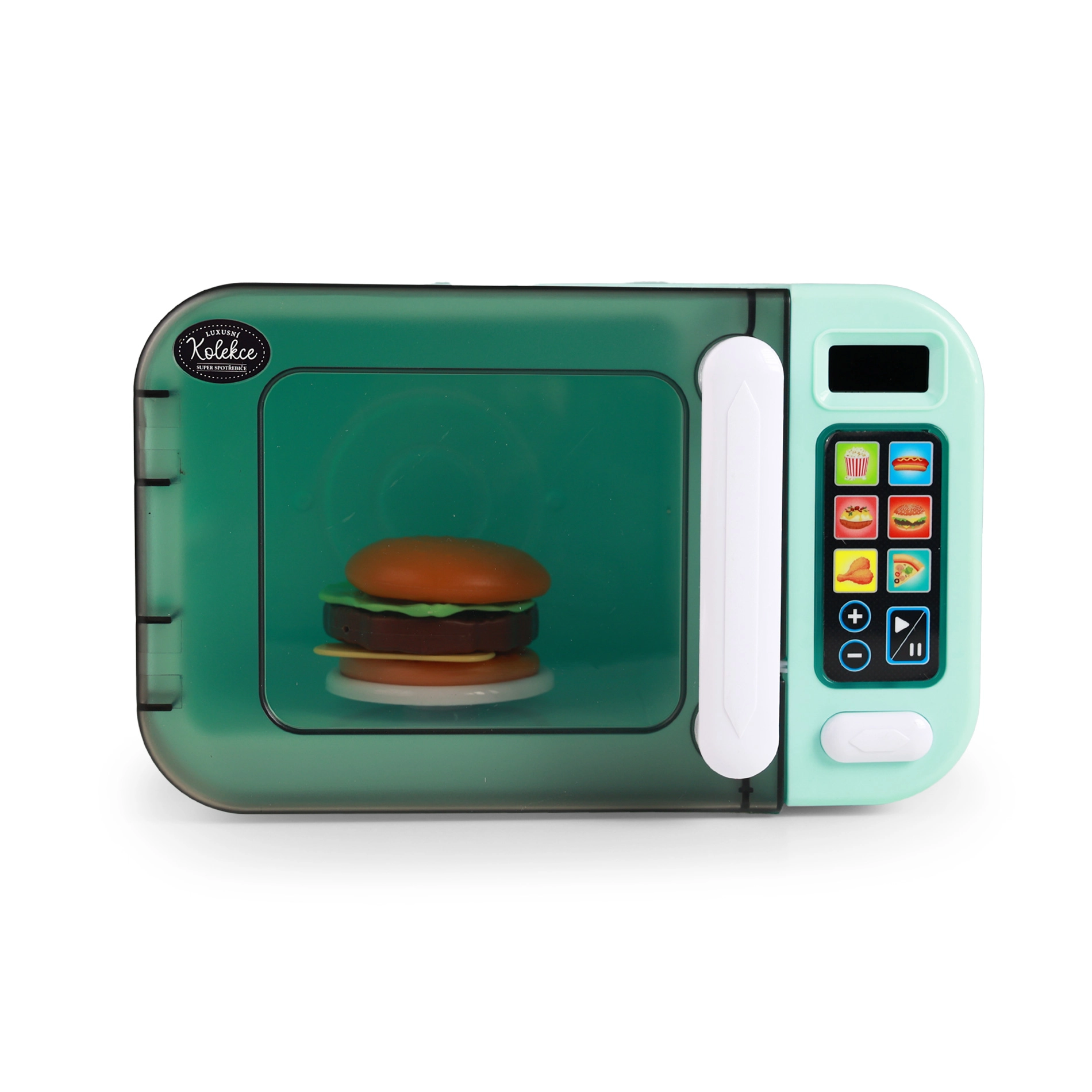Mänguasi on valmistatud kvaliteetsest PVC-st ning komplektis on kolm toidulisandit (hamburger, kana, pitsa), mis toetavad fantaasia arengut, peenmotoorikat ja rollimängu. Töötamiseks on vaja 3× AA patareid (ei sisaldu komplektis). Kompaktne suurus umbes 26,5 × 17 × 17 cm sobib igasse mängukööki.