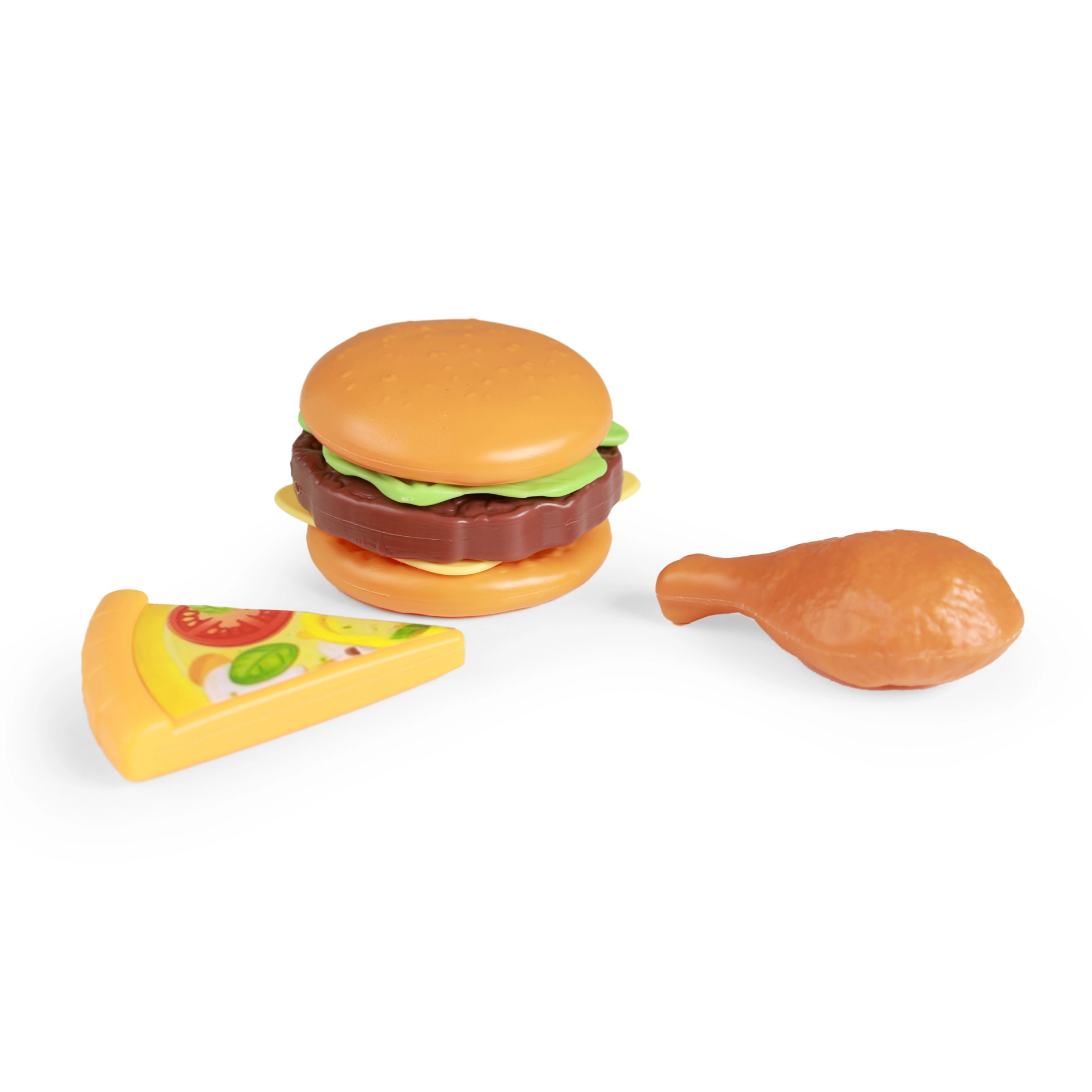 Komplekt sisaldab hamburgerit, kana ja pitsat. Lisad laiendavad mänguvõimalusi, toetavad fantaasiat ja rollimänge laste köögis.