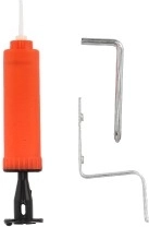 Komplektis on umbes 14 cm läbimõõduga pall ja praktiline pump, tänu millele on mäng paari minutiga valmis.