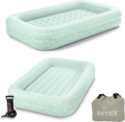 Intexi täispuhutav madrats mõõtudega 168x107x25 cm on suurepärane lastele reisidel – hotellides, laagrites jne. See on valmistatud vastupidavast PVC-st ja kaetud pehme, veekindla veluuriga meeldivas rohelises toonis, mis sobitub iga tuppa. Bostoni ventiil võimaldab madratsi ühe minutiga kergesti tühjaks lasta, pärast mida saab selle kokku panna ja ära panna.