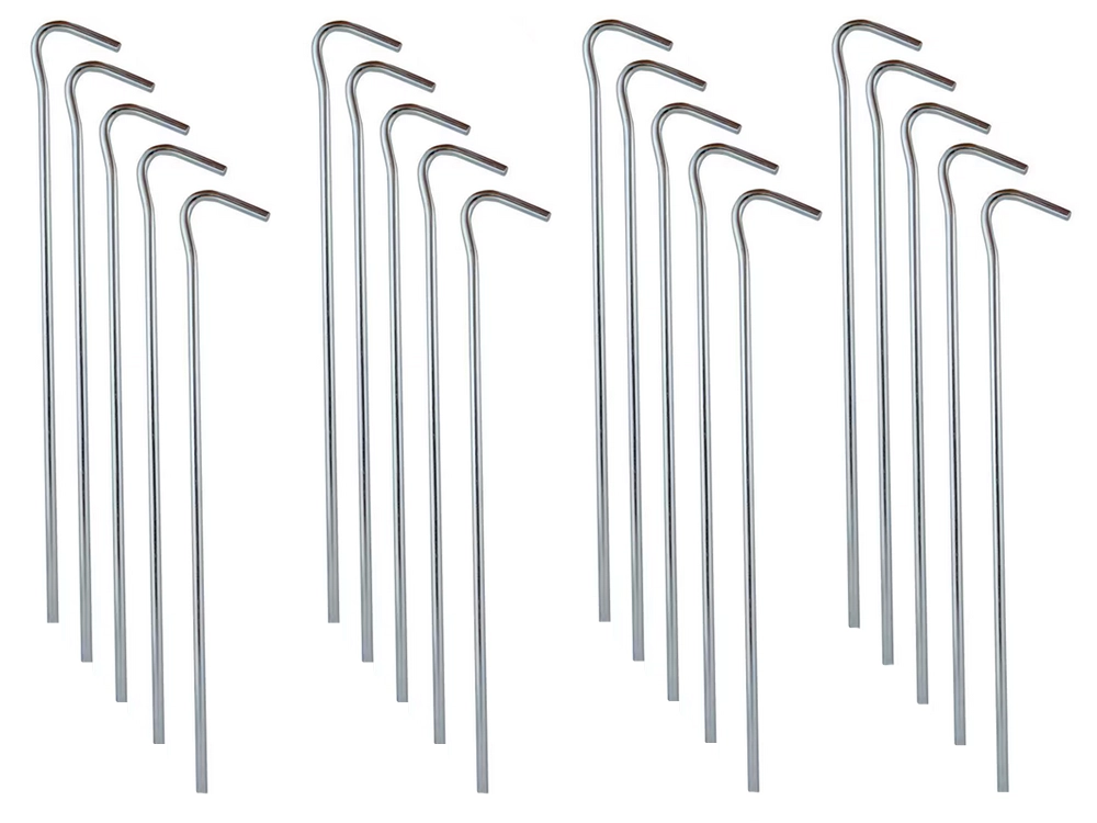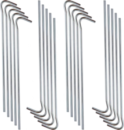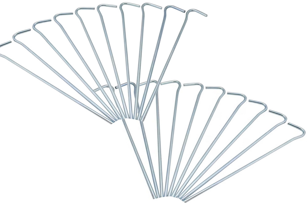 See praktiline 20-osaline komplekt sisaldab kvaliteetsest terasest vaiu läbimõõduga 3 mm ja pikkusega 18 cm. Need pakuvad stabiilset kinnitust matka- ja rannatelkidele, aiamajadele, kasvuhoonekiledele ja muule välivarustusele. Tänu vormide kombinatsioonile sobivad need erinevat tüüpi nööride ja aasadega.