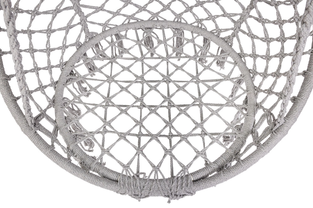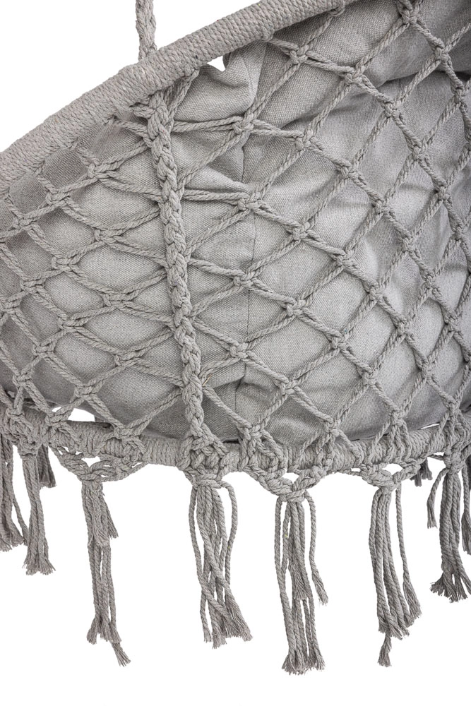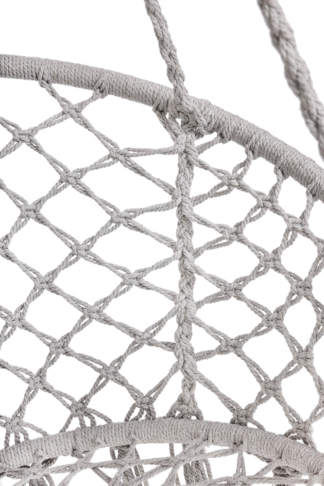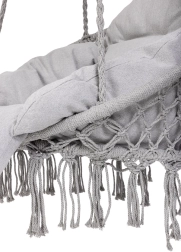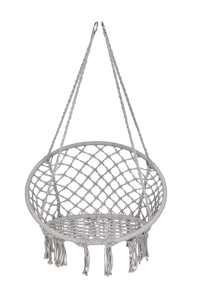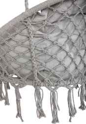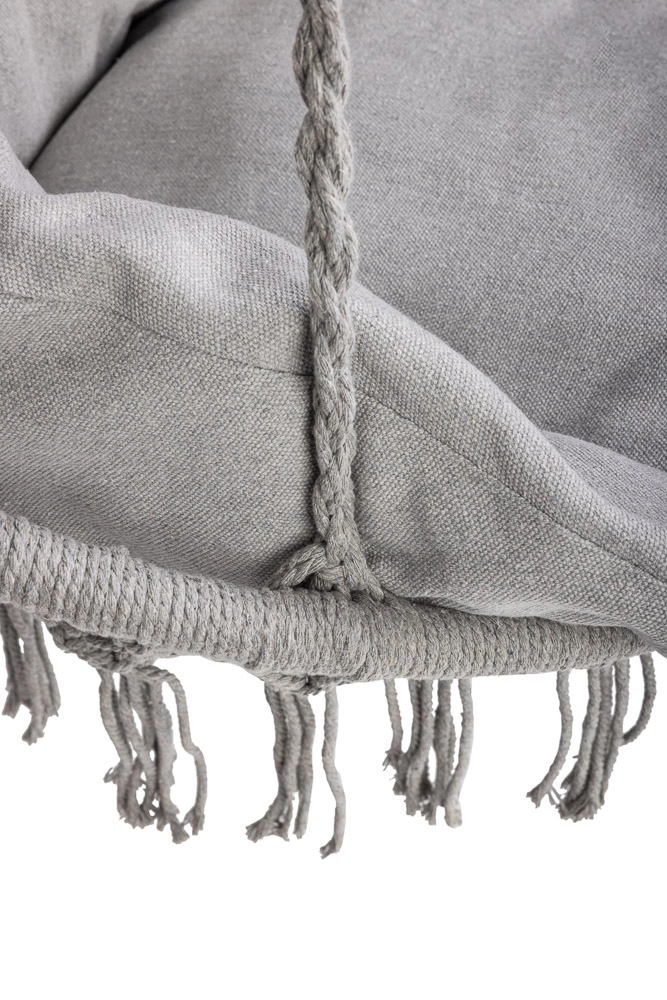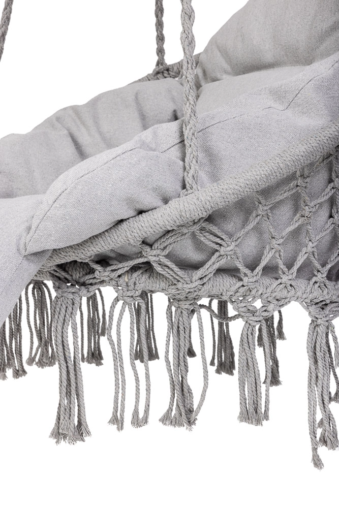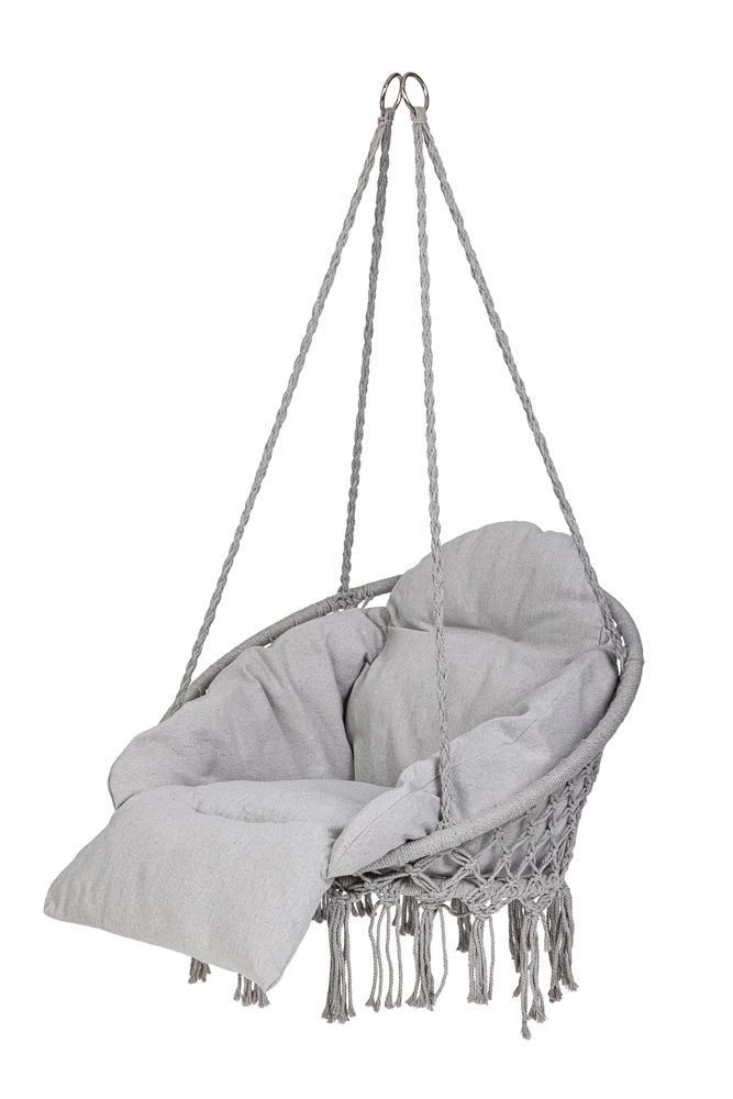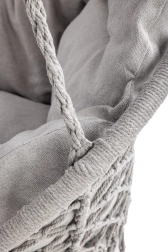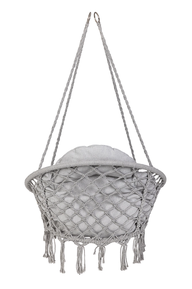 Loo kodus või aias mõnusad hetked stiilse pesatüüpi rippkiigega. Selle ruumikas ümmargune kuju, pehme padi ja kandevõime kuni 150 kg tagavad maksimaalse mugavuse lõõgastumisel. Universaalne hall värv sobitub nii interjööri kui ka välitingimustesse ning vastupidavad puuvillased köied koos metallraamiga tagavad stabiilsuse ja pika kasutusea.