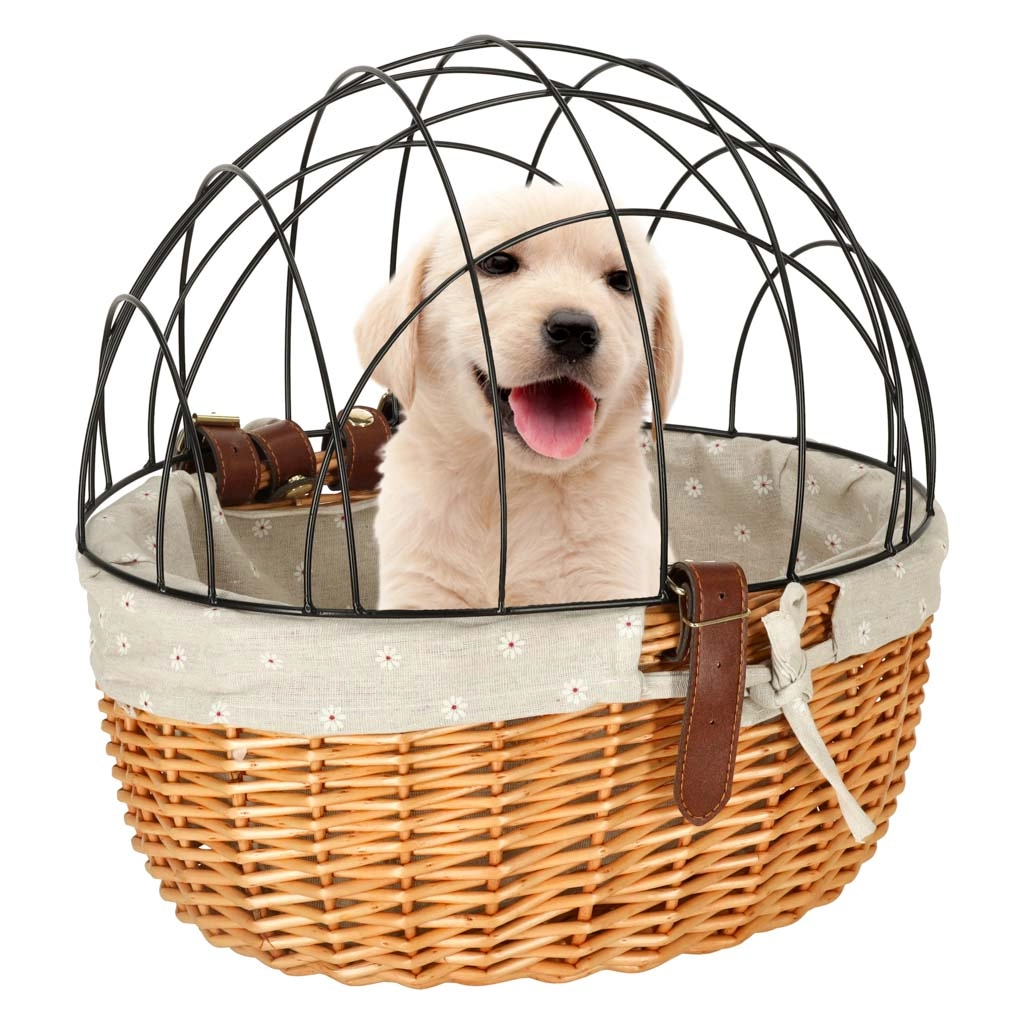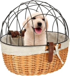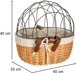 See lenksule kinnitatav punutud korv ühendab ohutuse, mugavuse ja ajatult kauni välimuse. Tugev metallkuppel kaitseb lemmikut sõidu ajal, võimaldades tal samal ajal välja vaadata. Kvaliteetne punutis teeb korvist vastupidava ja stabiilse, tekstiilservad tõstavad mugavust ja kaitsevad ääri.