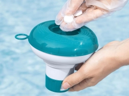 Praktiline Bestway ujuv kloori dosaator hoolitseb basseinikemikaali pideva doseerimise eest ja hoiab kogu hooaja vältel vee kristallselgena. Piisab, kui lisada kuni 2,5 cm läbimõõduga klooritabletid (ei kuulu komplekti), ning dosaator vabastab need turvaliselt ja ühtlaselt üle veepinna.