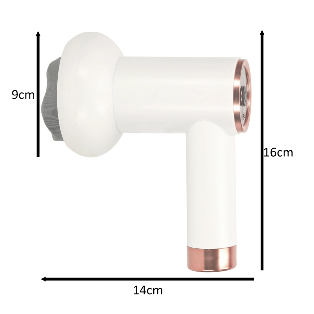 Sisseehitatud 1200 mAh aku võimaldab masseerida ilma juhtmeta just siis, kui vajad. Ergonomiline käepide ja kompaktsed mõõtmed 14 × 16 × 9 cm tagavad mugava kasutuse nii kodus kui ka reisil.