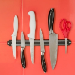 See 32,5 cm pikkune magnetriba on usaldusväärne lahendus metallist esemete ohutuks ja ülevaatlikuks hoiustamiseks. Tugev topeltmagnettuumaga magnet tagab, et noad, käärid, lusikad või tööriistad püsivad kindlalt paigal ega libise. Elegantne ja lihtne disain sobitub suurepäraselt igasse interjööri.