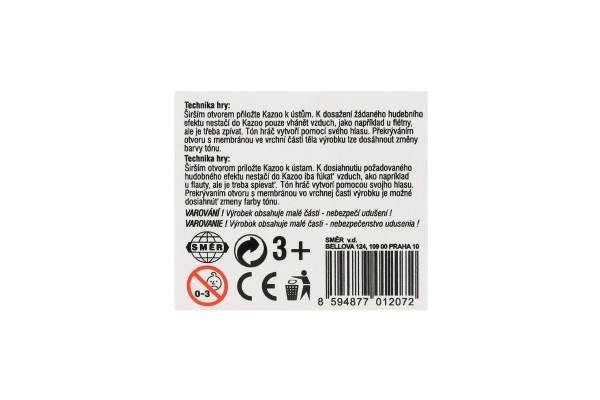 Plastist kazoo on suurepärane viis tutvustada lapsi ja algajaid muusikamaailmaga. Mängimine on väga lihtne – puhumise asemel piisab, kui ümised huulikusse, ning kazoo loob iseloomuliku sumiseva tooni. Tänu kompaktsele 12 cm pikkusele mahub see mugavalt taskusse ja on alati käepärast.