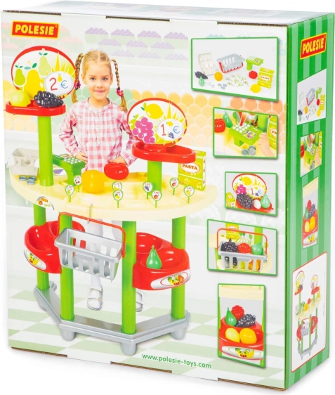 Astu fantaasiamaailma Polesie Supermarketi mängukomplektiga. Tänu realistlikele lisadele, nagu hinnasildid, mündid ja erinevad kaubad, loovad lapsed kergesti päris poe atmosfääri. Leti vaheriiulid ja kassa kutsuvad loomulikule rollimängule – müüja, klient, kassapidaja – ning arendavad sotsiaalset suhtlust.