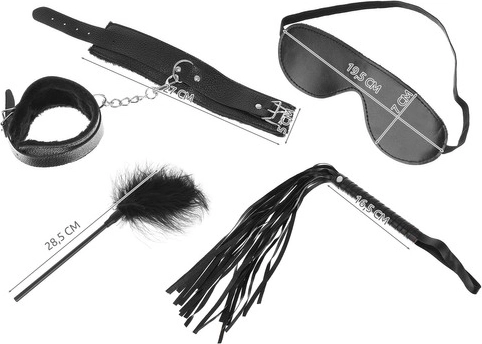 Komplekt sisaldab kõike vajalikku erinevate BDSM-mängude jaoks, alates õrnast stimuleerimisest kuni sensuaalsete jõumängudeni.