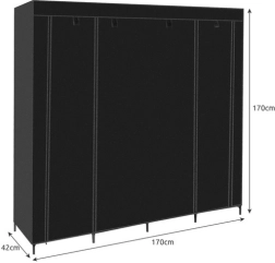 Mõõtudega 170 x 42 x 170 cm tekstiilkapp on suurepärane lahendus neile, kes otsivad praktilist ja kaasaskantavat hoiuruumi. Kerge materjali tõttu on seda lihtne liigutada ning see sobib hästi piiratud ruumiga interjööridesse.