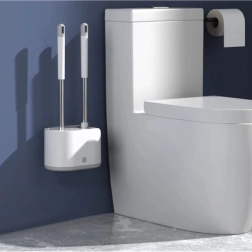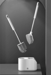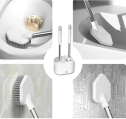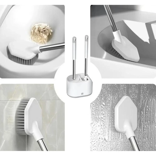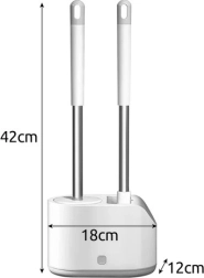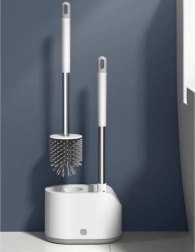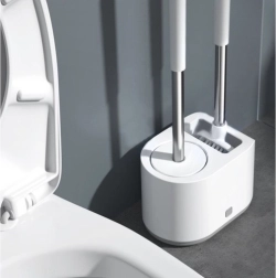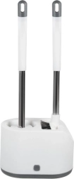 Praktiline RUHHY 2 tualetiharja komplekt igapäevaseks puhtuseks ja hügieeniks. Kombineerib ümmarguse TPR-otsiku õrnaks puhastuseks ja lame terava otsikuga pea nurkade ja servade jaoks. Tänu tilkumisalusele nupuga ja seinahoidikule säästab ruumi ja hoiab vannitoa kuivana. Vastupidavad materjalid PP, roostevaba teras, TPR ja PS tagavad pika kasutusea.