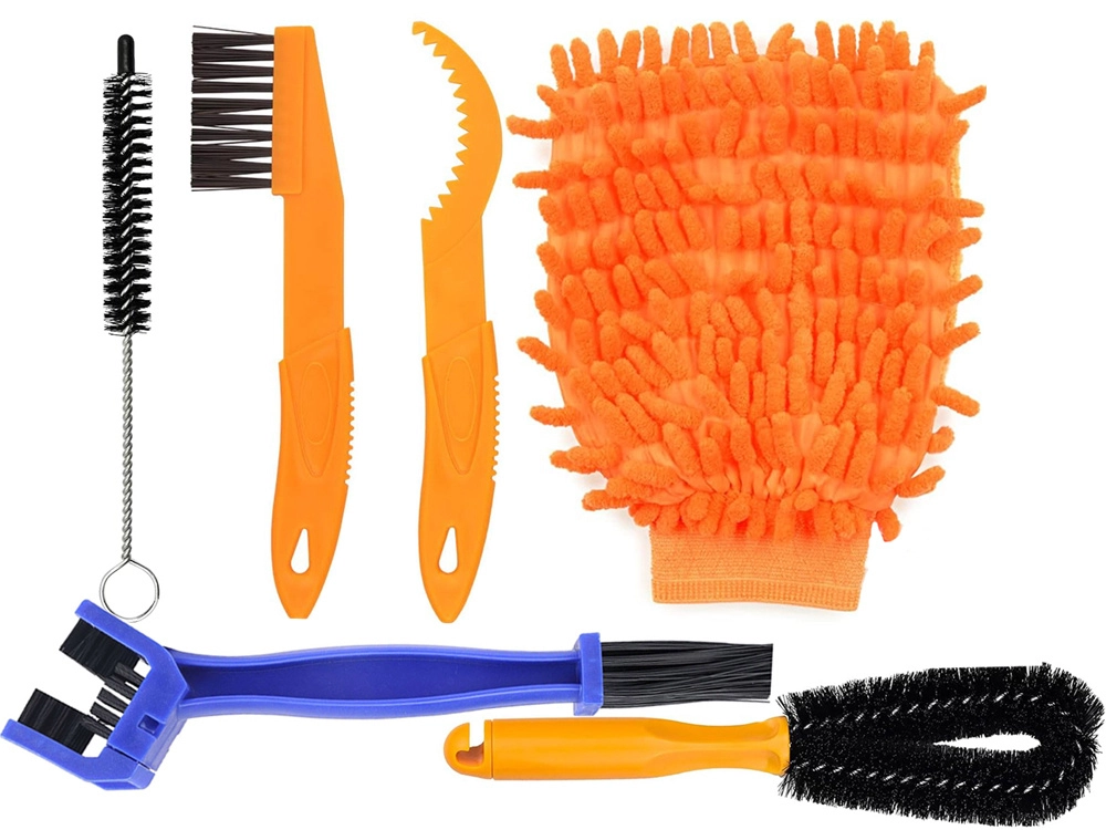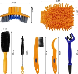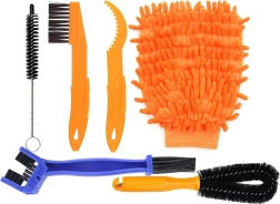 Täielik 7-ühes jalgratta puhastuskomplekt kogu ratta kiireks hoolduseks. Sisaldab harju ketile, kassettile, rehvidele ja kitsastele vaheruumi-dele ning mikrokiudkinnast õrnaks pesuks. Ergonomilised käepidemed tagavad mugava kasutuse ja materjalid ei kriimusta pindu. Ideaalne linna-, mägi-, maantee- ja elektriratastele.