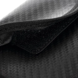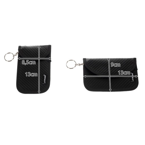 Igal ümbrisel on kaks eraldi taskut – sügavam koos võtmerõngaga auto võtmele (varjestav), väiksem makse- ja juurdepääsukaartidele. Vastupidav PU-pinnaviimistlus süsinikmustri välimusega, pehme polster polüestrist ja tugev takjakinnitus kaitsevad sisu kahjustuste ja juhusliku väljakukkumise eest. Komplektis on vertikaalne ja horisontaalne variant; horisontaalsel versioonil on lisaks tagumine kinnitus koti või seljakoti külge kinnitamiseks.