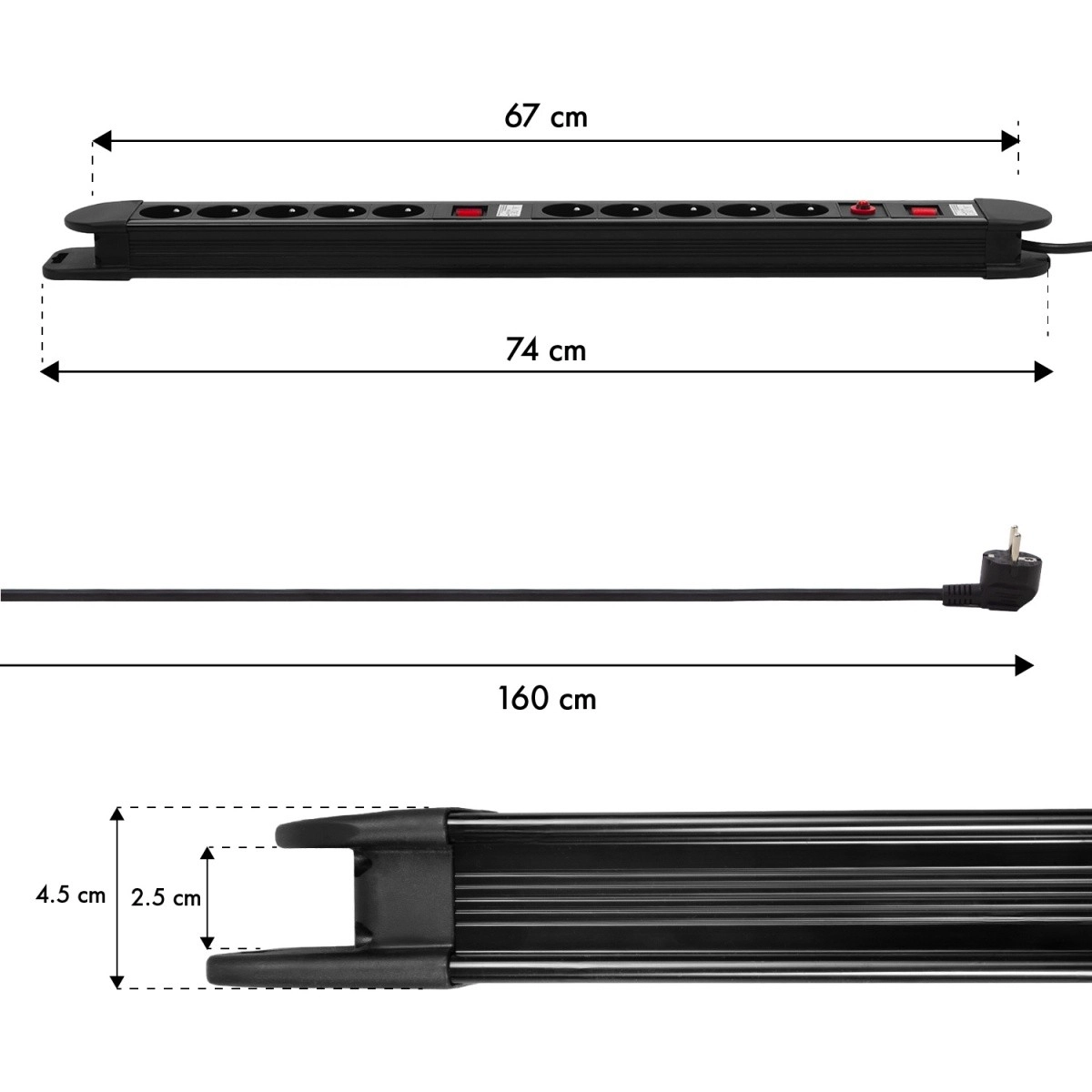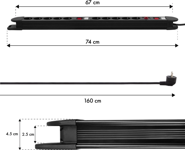 Laiendage seadmete toidet nutikalt ja turvaliselt. See vastupidav jaotusliist 10 maandatud pistikupesaga pakub paindlikku tarbimise juhtimist tänu kahele eraldi lülitile – iga liistu pool töötab iseseisvalt. Kaitse tagab sisseehitatud automaatkaitselüliti, mis reageerib koheselt ülekoormuse või lühise korral.