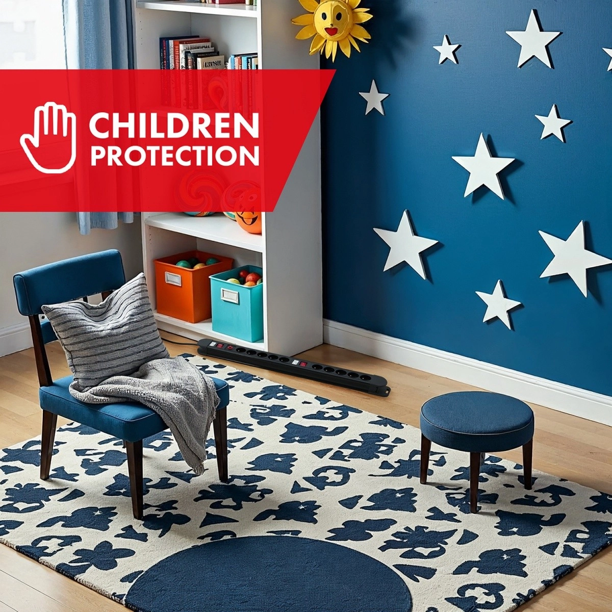 Sisseehitatud automaatkaitselüliti kaitseb ülekoormuse ja lühise eest, lastekaitse takistab võõrkehade sisestamist pistikupesadesse.
