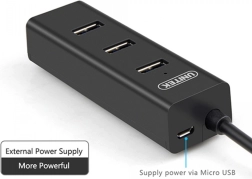 Elegantne ja kompaktne plastikust korpusega HUB kaunistab iga töölauda nii kodus kui ka kontoris. Jaotur saab toite otse USB-liidesest ning toetab BC1.2 laadimistehnoloogiat, mis seab nutikalt pinget ja katkestab toite, kui aku on laetud. See pikendab laetavate akude eluiga. Lisaks on jaoturil täiendava toite jaoks micro USB port, mis võimaldab toita ka suurema energiavajadusega seadmeid.
