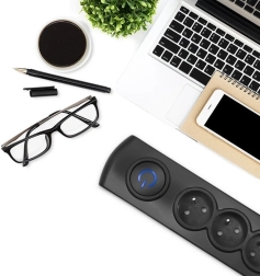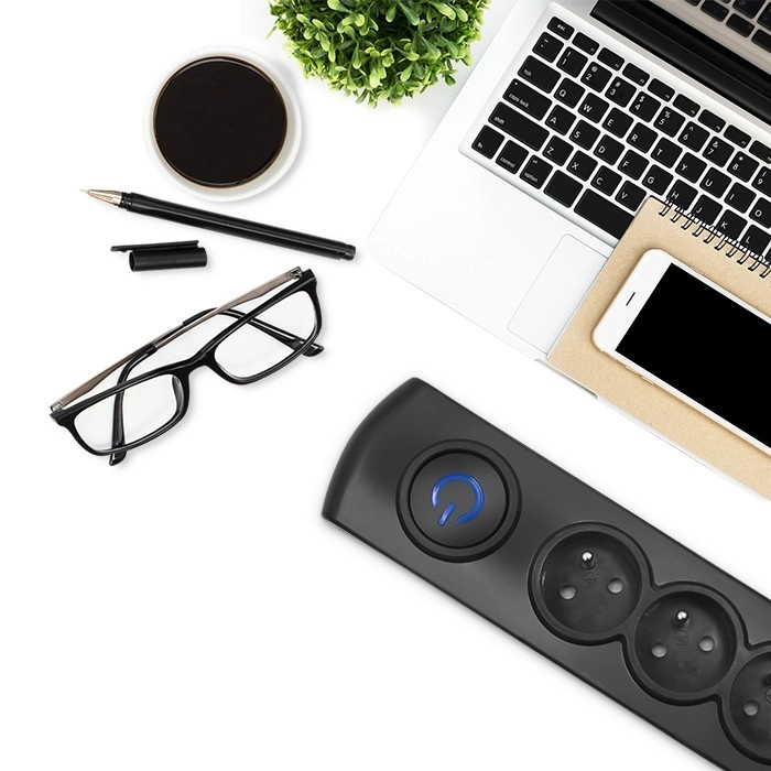 Juhtimine on maksimaalselt mugav: valgustusega jalalüliti Quick Switch näitab selgelt, millal toide on sees, ja võimaldab kõik ühe vajutusega välja lülitada. Elegantne must välimus sobib modernsetesse interjööridesse ning nutikas kaabli juhtimine võimaldab ülejääva kaabli kerimist liistu ümber. Samuti on olemas võimalus paigaldada mööblile või seinale, et tagada puhas ja ohutu kaablite haldus.
